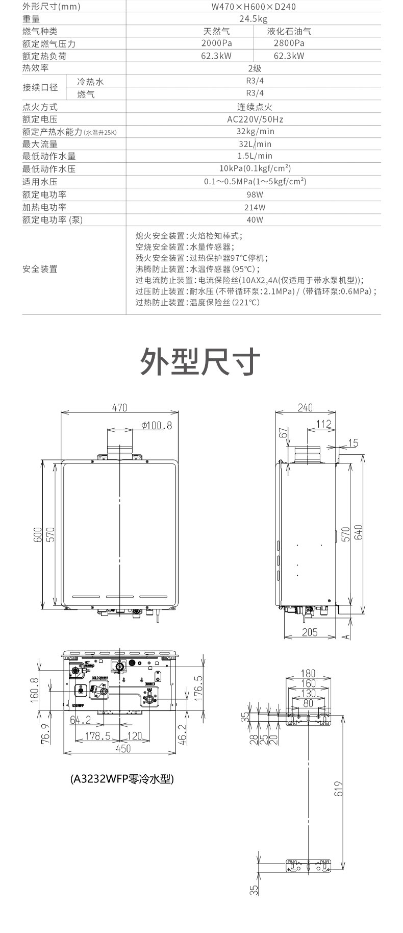 額定產(chǎn)熱水能力水溫升25℃ 32kg/min